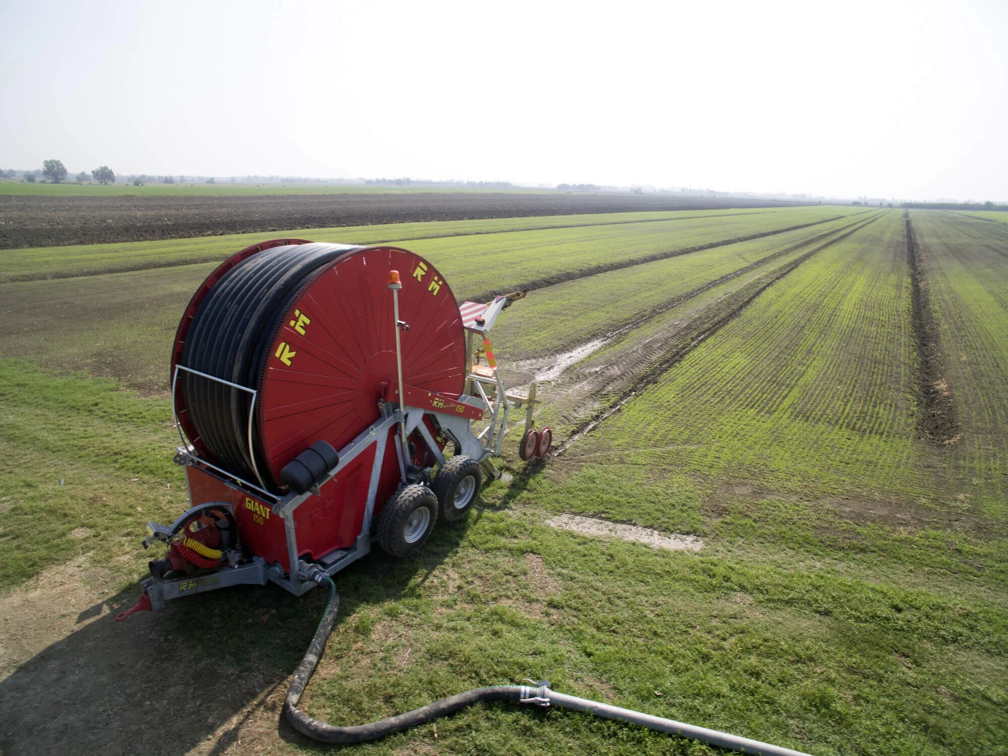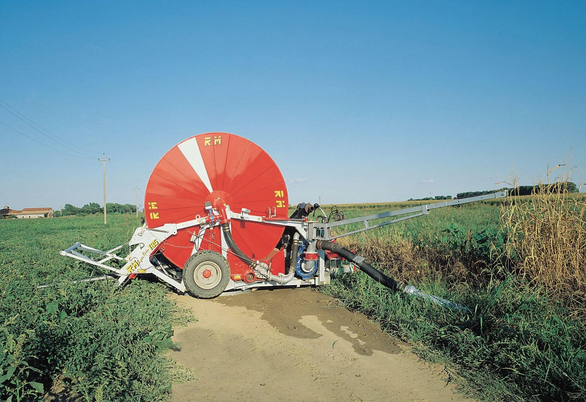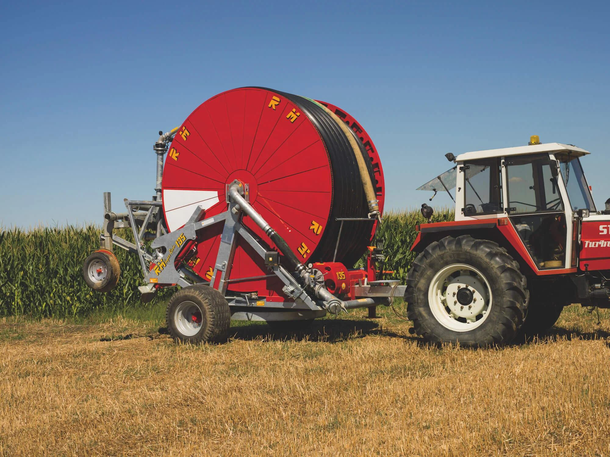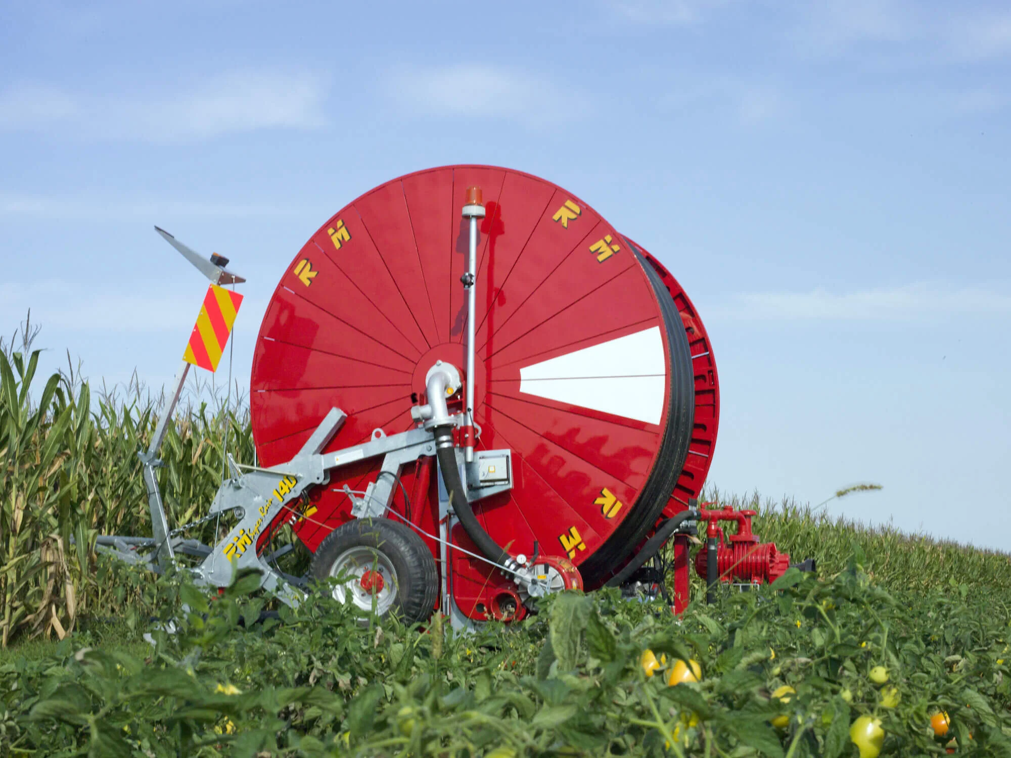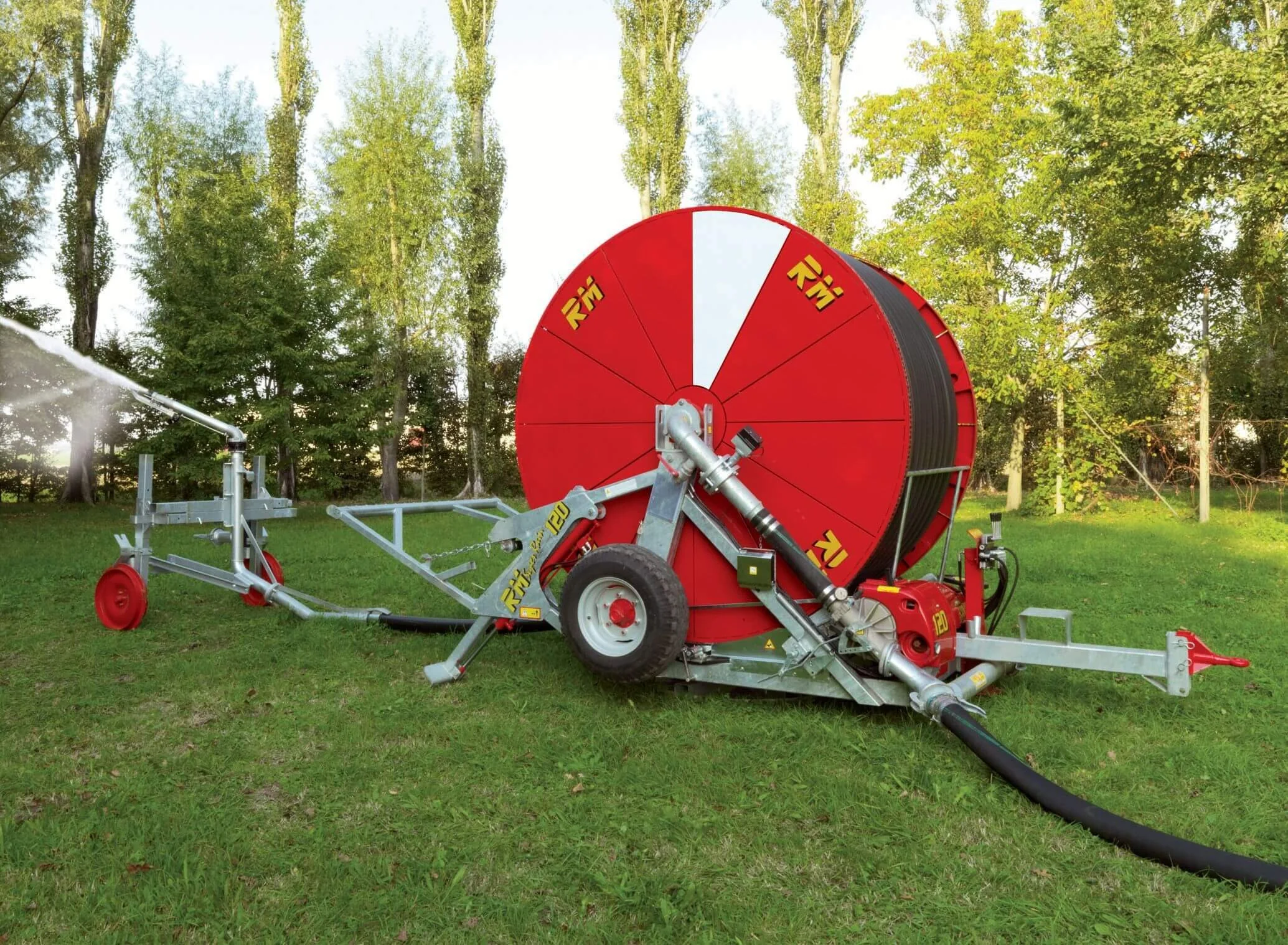 The XJ range of RM hard hose irrigators offers greater stability and greater efficiency. The XJ machines have the added features of Automatic Vertilift, a belly plate and hydraulic adjustable wheels. The Automatic Vertilift lifts the gun trolley towards the hose reel at the end of the run, while keeping the gun level, allowing the machine to water to the very end of the run without causing crop damage. The belly plate and hydraulic wheels give the machine greater stability on steep slopes and rough terrain.